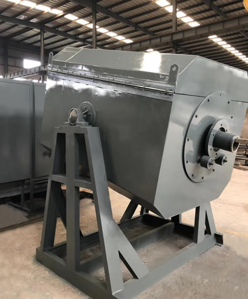 RG2系列滾筒式電阻爐外殼由鋼板和型鋼制成長方型爐體。爐襯采用超輕質(zhì)高強度0.6g/cm3微珠節(jié)能耐火磚,保溫采用全高純鋁硅酸鋁纖維,屬于典型超節(jié)能結(jié)構(gòu)。電阻絲采用0Cr21Al6Nb高電阻合金絲,繞成螺旋狀安裝在滾筒爐膛的擱絲磚上(節(jié)能爐型請參閱后面說明)。滾筒爐罐采用1Cr18Ni9Ti不銹鋼,或采用CrMnN耐熱鋼鑄件制成圓柱型,爐罐兩端由軸承支座支在爐體外,并采用變頻調(diào)速電動機帶減速機驅(qū)動,使?fàn)t罐緩慢旋轉(zhuǎn),工件隨滾筒爐罐旋轉(zhuǎn)使之受熱均勻,這樣工件互相之間無復(fù)蓋現(xiàn)象,熱處理后色澤一致,機械性能相同。爐罐一端為進、出料口,另一端可根據(jù)需要加入保護氣氛或滴入保護介質(zhì)。進料時,通過電動傾轉(zhuǎn)機構(gòu),使?jié)L筒爐向上傾斜,使進料口向上20°,便于進料,出料時向下傾斜40°,即可倒出爐罐內(nèi)工件。