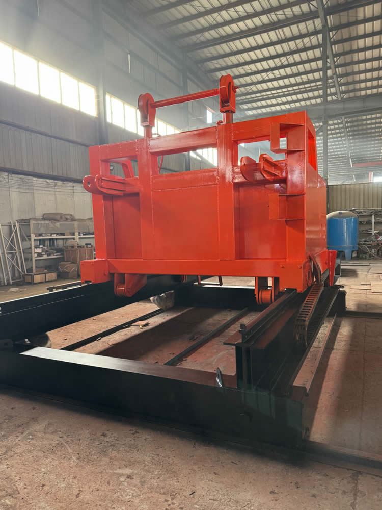 4、回火裝爐:按動入爐按鈕——中轉車右移(或左移)到回火爐爐口——爐門開啟——中轉車把工件送入回火爐膛——中轉車自動退出——爐門關閉——裝爐工作完成。